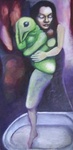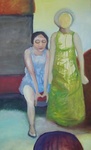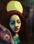 2007Sombere dame met een vreemde koe, Donkere kleuren met een lichtpuntje